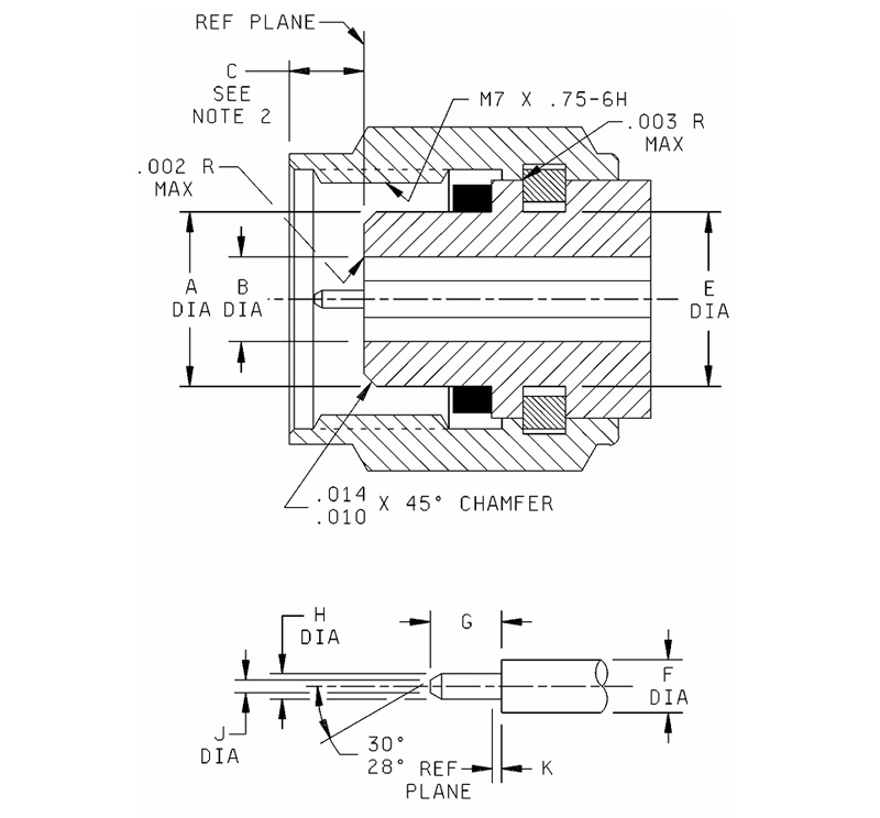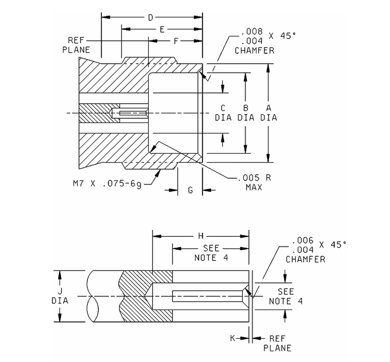 1. طول رزوه از انتهای مهره اتصال، حداقل 4.37 میلی متر (0.172 اینچ)، 0.63 میلی متر (0.025 اینچ) ± 0.25 میلی متر (0.010 اینچ) است.